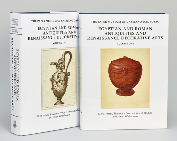 This two-volume catalogue of more than 400 drawings includes depictions of portable Roman, Etruscan and Greek antiquities such as vases, lamps, mirrors, tripods, bells, armour, weights, measures, musical instruments, mirrors, brooches and jewellery, as well as a range of Egyptian and Egyptianising antiquities (from sarcophagi and mummy masks to cult statues and reliefs) and designs for Renaissance and seventeenth-century vases, candelabra, princely gold and silver tableware.